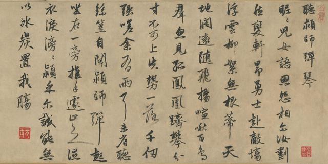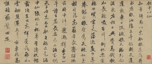 全卷包含:王右军(李白诗)、桃源图(韩愈诗)、把酒问月(李白诗)、听颖师弹琴(韩愈诗)、走笔谢孟谏议寄新茶(卢仝诗)、饮中八仙歌、对雪、又雪(杜甫诗)等诗十二首,图九幅。