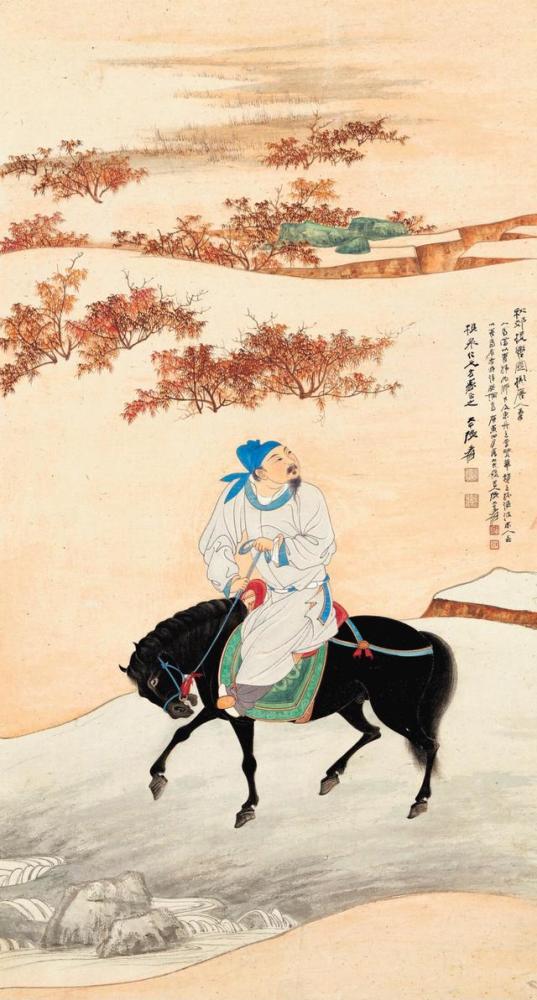 张大千《拟唐人秋郊揽辔图》