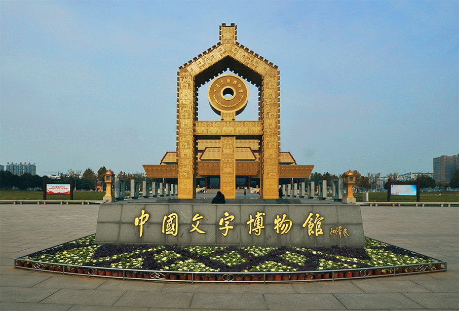 中国文字博物馆,位于河南省安阳市人民大道东段656号。是经国务院批准的一座集文物保护、陈列展示和科学研究功能为一体的国家级专题博物馆,也是中国首座以文字为主题的博物馆。 该馆是一组具有现代建筑风格和殷商宫廷风韵的后现代派建筑群,由字坊、广场、主体馆、仓颉馆、科普馆、研究中心、交流中心等建筑组成,总占地143亩,总建筑面积34500平方米。共入藏文物4123件,其中一级文物305件,涉及甲骨文、金文、简牍和帛书、汉字发展史、汉字书法史、少数民族文字、世界文字等多个方面。2007年11月29日,中国文字博物馆一期工程开工,2009年11月26日正式开馆。 中国文字博物馆序厅位于一楼大厅,整体设计隐含了传统文化中天圆地方的理念,序厅四周的四面浮雕分别展示了中国文字载体发展史、中国书法发展史,以及一片甲骨惊天下和少数民族文字大家庭的盛况。