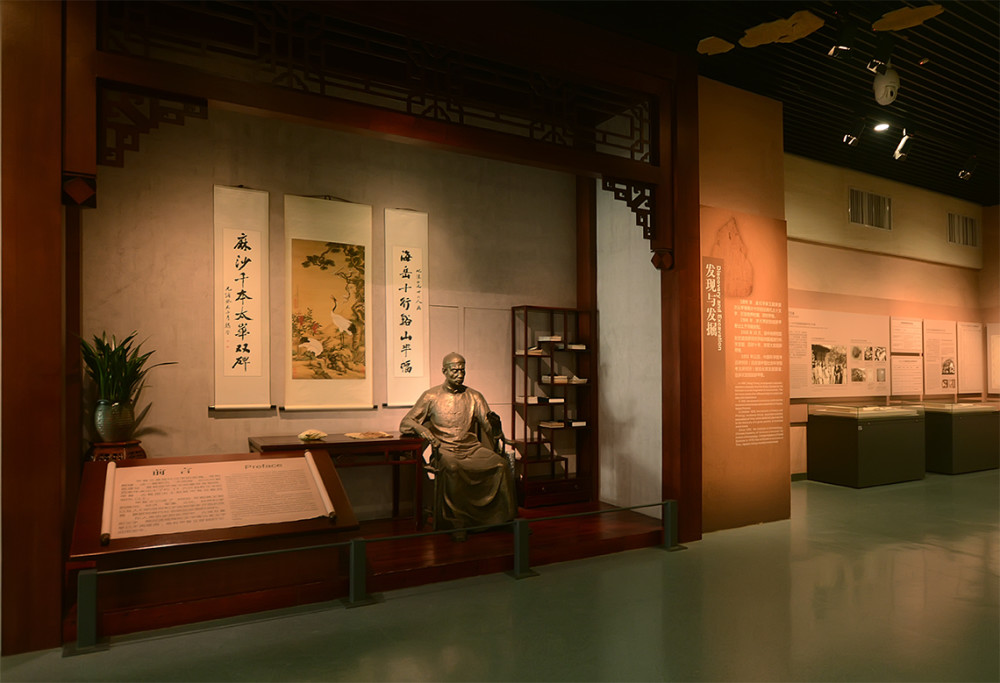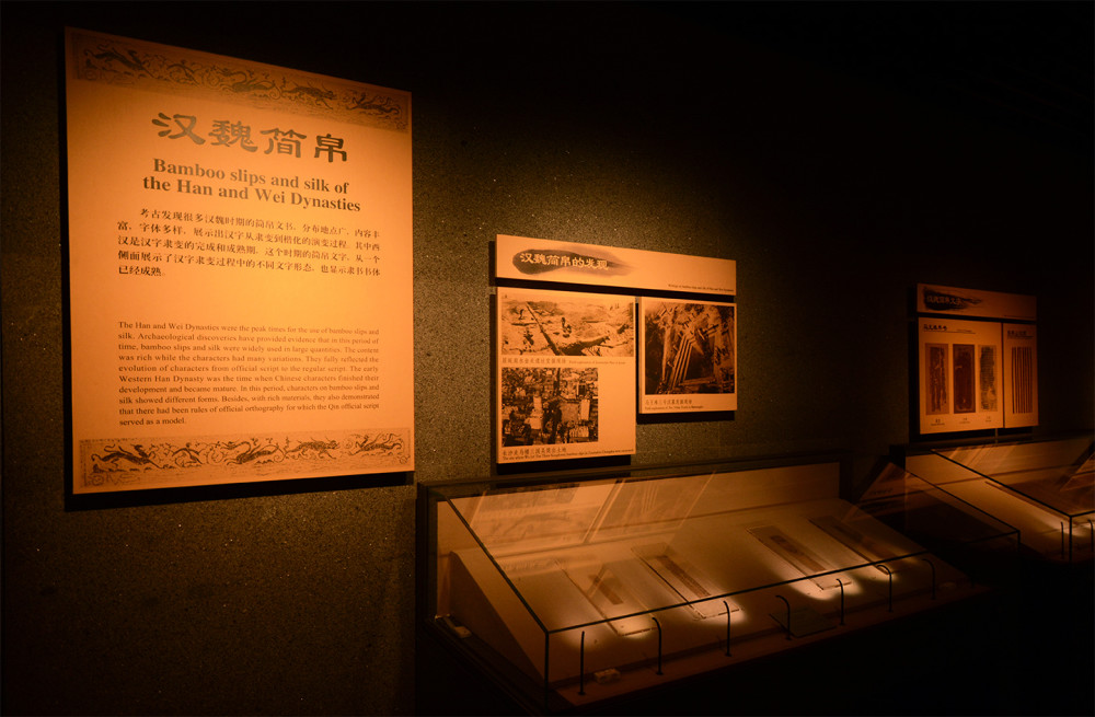 中国文字发展史第五展厅 人类早期通过节省篆刻等方式传达信息,但还没有形成文字的概念,后来在龟甲兽骨上刻写,甲骨文开始出现。在殷商时期,文字大量篆刻在陶器玉器青铜器上,开始逐渐走向成熟。随着造纸术印刷术的发明,人类开始自书编纂。到20世纪70年代,汉字进入计算机时代,使汉字信息处理技术从无到有。本展厅主要介绍文字载体的发现及演变。