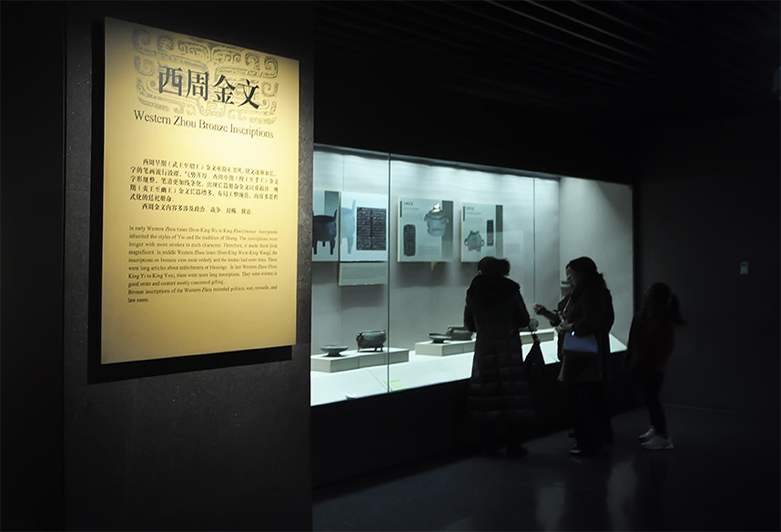 中国文字发展史第二展厅 金文,是商周时期铸刻在青铜器上的文字的总称,金文应用的年代有1200多年,在众多的先秦文字中,金文文占有重要的地位,它反映了秦用小篆统一文字前1000多年间中国文字发展变化的基本情况。本展厅主要介绍金文的出现及发展.