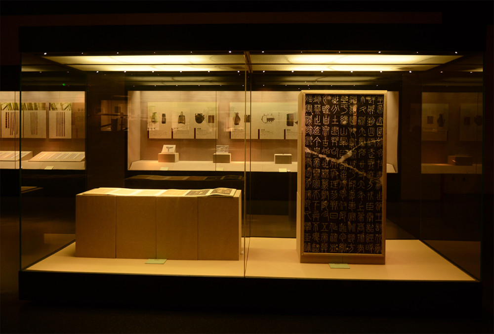 文字一统 主要展示刻石、青铜器铭文、玺印、秦隶等与秦代文字统一和演化相关的文字文物。