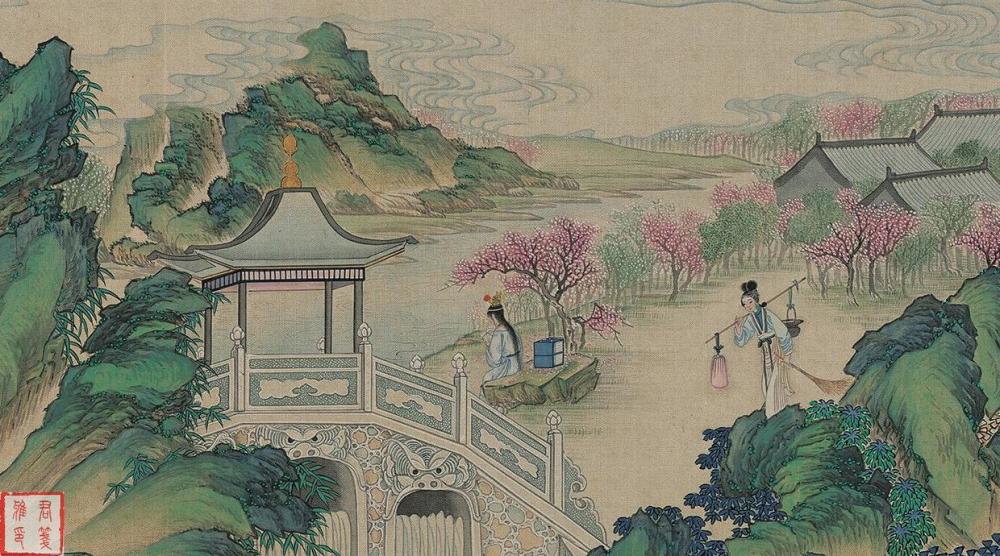 (第二十三回)“良辰美景奈何天,赏心乐事谁家院。”“则为你如花美眷,似水流年……”林黛玉听了这两句,不觉心动神摇。又听道:“你在幽闺自怜”等句,亦发如醉如痴……细嚼“如花美眷,似水流年”八个字的滋味……又兼方才所见《西厢记》中“花落水流红,闲愁万种”之句,都一时想起来,凑聚在一处。仔细忖度,不觉心痛神痴,眼中落泪。