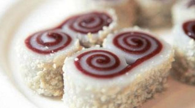 譬如文章有这么一段:“散押岁钱荷包金银锞;摆上合欢宴来,男东女西归坐,献屠苏酒、合欢汤、如意糕毕。”精致的点心自然魅力四射,而放在贾府如此这般的盛大节庆上,颇带点如意意味的吉祥喜庆的食物就更显得可人无比了。