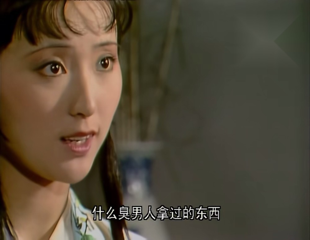 黛玉料理完父亲的丧事又回到贾府,宝玉“只问得黛玉平安二字,馀者也就不在意了”,他还献宝郑重把北静王所赠苓香串取出来,转赠黛玉,黛玉一边说“什么臭男人拿过的,我不要”,一边把手串扔到地上。