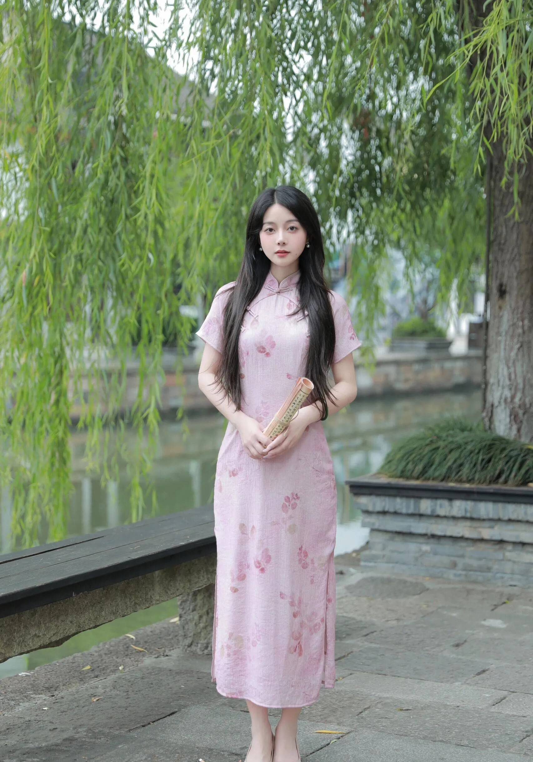 周围的环境也似乎在为小知那位主角做陪衬。柳树掠过海面,虽然在述说着千年的柔情与哀愁;河水静静地飘荡,带着一丝暖意和甜美;远处的建筑则默默地见证着时光的演进与历史的苍凉。这一切的一切,都与小知产生了完美的融合,共同构成了一幅令人心旷神怡的画面。