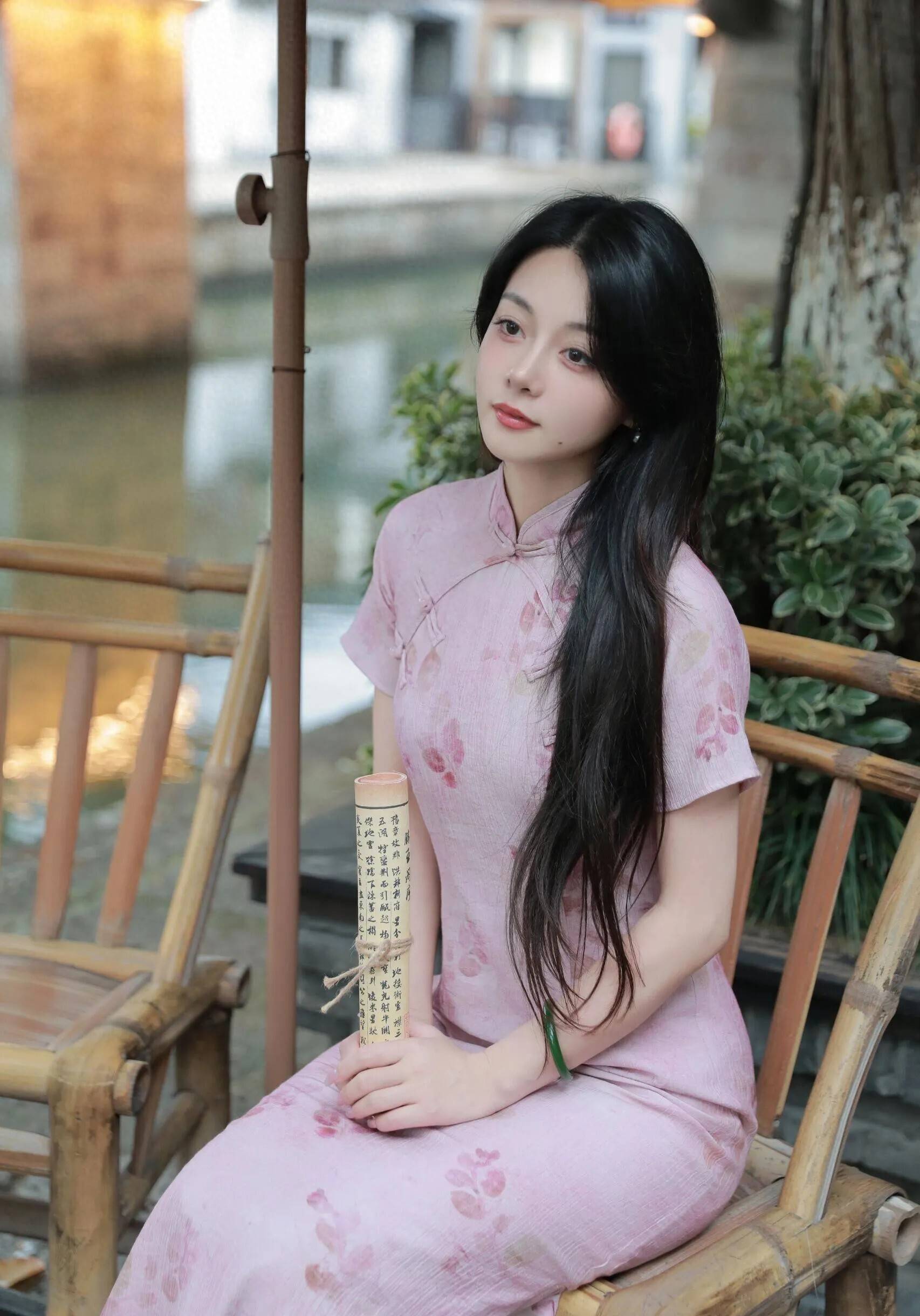 小知手持一把精美的折扇,轻轻摇曳,扇面上的复杂花纹和文字似乎在低语,述说着古老而神秘的故事。这把折扇除了是她春日里的一抹凉爽,更是她身分与品位的象征,透漏出她深厚的文化积淀和对传统文化的热爱。