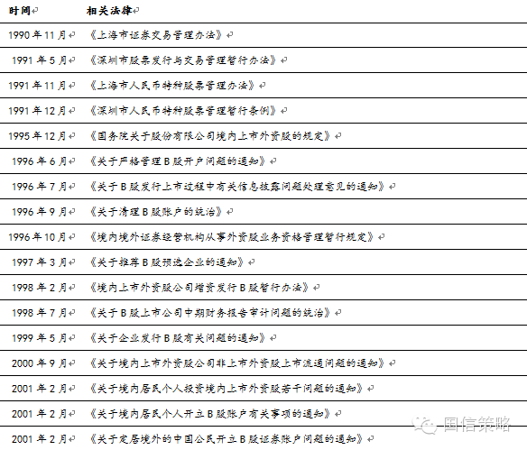 表1:B股市场历史沿革相关政策