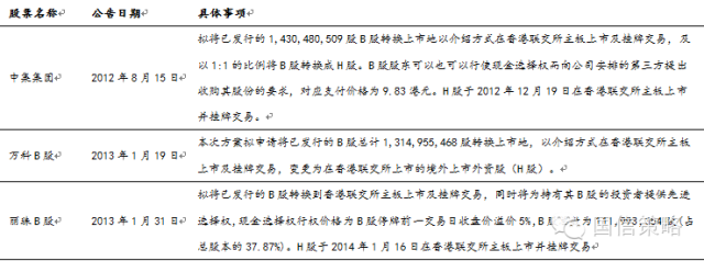 表3:B股转H股相关公司案例