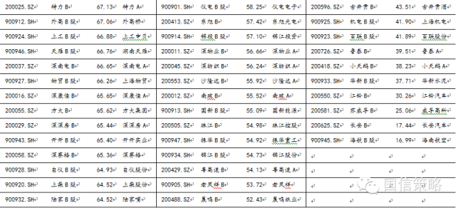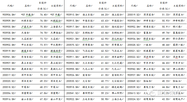 表6:B股折价率相对较高的股票