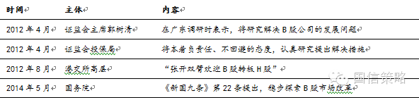 表2:关于B股改革的有关讲话和政策