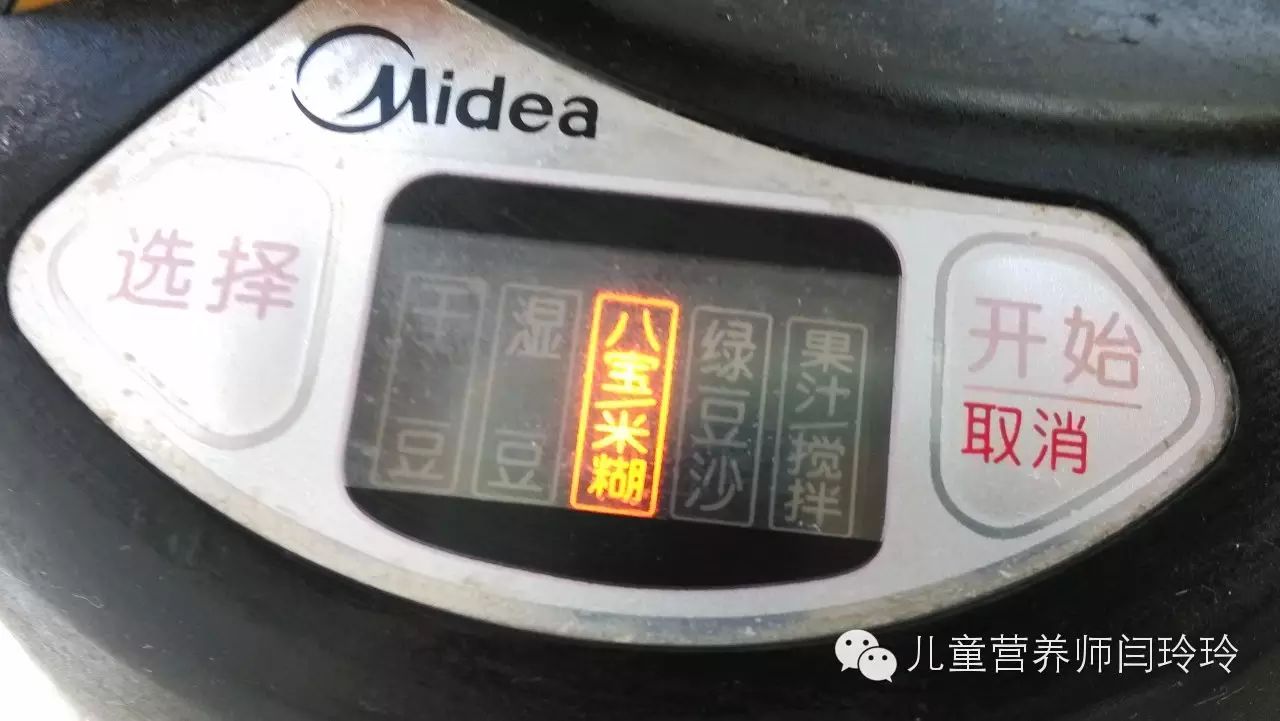 6、选择米糊键,剩下的工作就交给豆浆机吧;可以去准备其它食物了,20分钟后,听到滴滴的声音,香甜的米糊就好了;但最近我才知道,有的豆浆机打米糊要40分钟,太坑了....