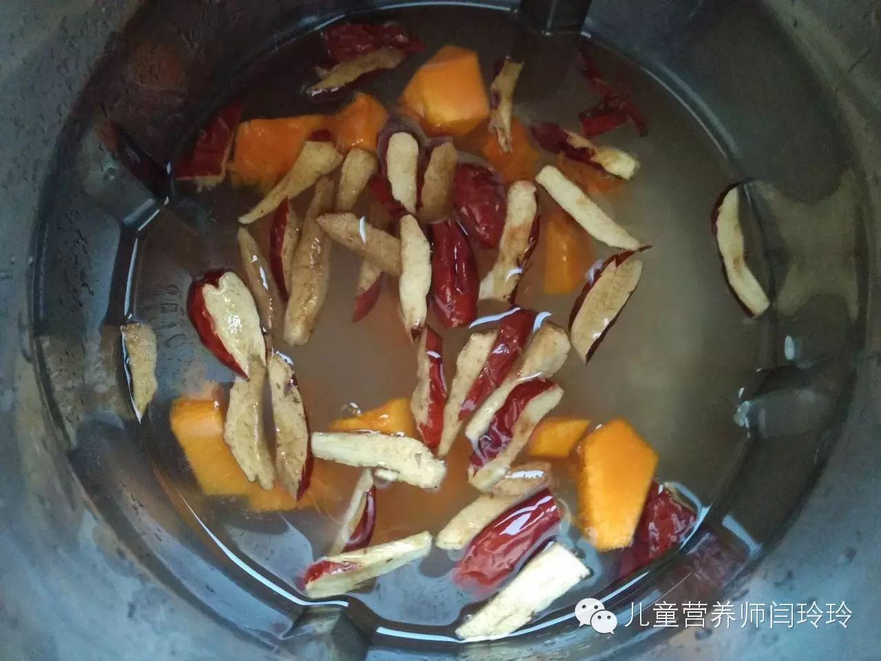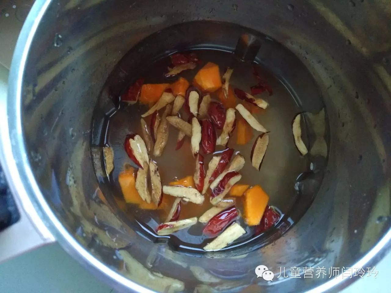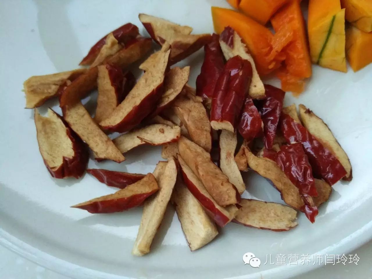 南瓜约50克,大、小米共约25克,红枣3、4颗,燕麦少许;