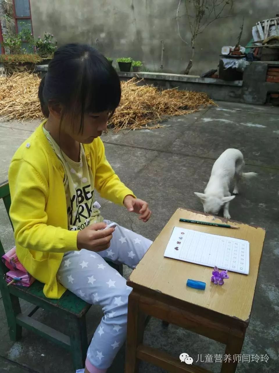 在院子里写作业,有狗狗、猫猫在一旁陪伴~