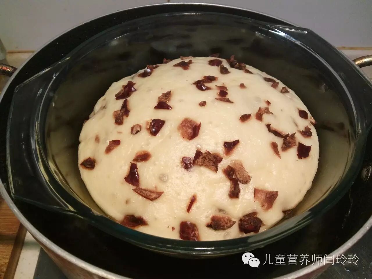 其实做发糕比做馒头包子省事多了,主要是不用揉面,哈哈,这款发糕的主要原料是鸡蛋、牛奶和全麦面粉,鸡蛋可以为宝贝提优质蛋白,牛奶含有丰富的钙质,而且消化吸收利用率高,全麦面粉相对精白面粉营养更丰富,含有膳食纤维、B族维生素和矿物质,而红枣的加入又更加丰富了口感,这款发糕可以为宝贝提供碳水化合物、蛋白质、脂肪和多种维生素和矿物质,作为早餐是非常不错的选择。