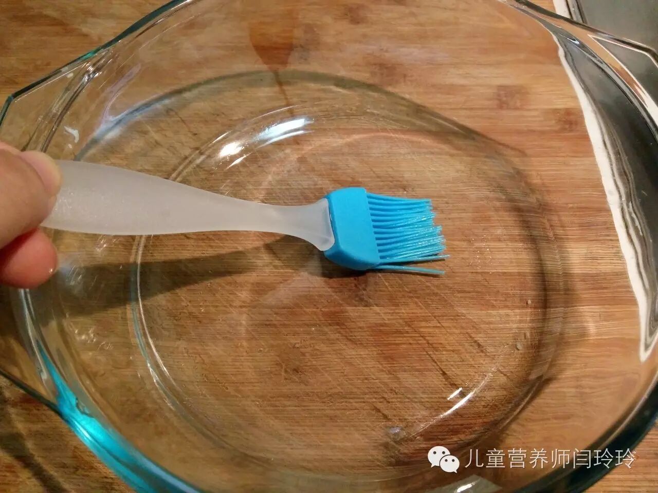 7、另取一个平底容器,在底部和四周刷上薄薄一层油,蒸好后有助于发糕脱落。