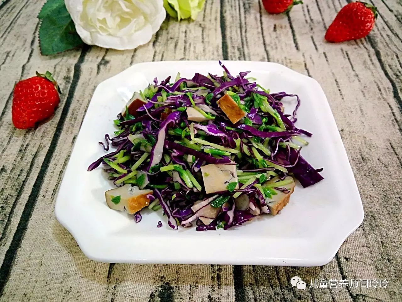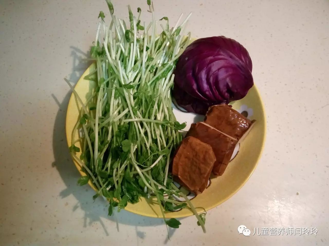 紫甘兰的营养价值是不错的,VC、VE、胡萝卜素等维生素含量都非常丰富,紫甘兰是紫色蔬菜之一,紫色蔬菜有很强的抗氧化功能,特别富含植物化学物质花青素,有增强抵抗力,预防过敏,抗菌消炎的功效;豌豆苗富含胡萝卜素,在体内可以转化成VA,能修复呼吸道粘膜,同时也具有消炎的作用;孩子生病期间,消化功能也比较弱,通常会减少或暂停高蛋白、高脂肪、高糖的食物,像肉、蛋、鱼、虾等,以减轻宝贝的消化负担,这个时候,我们就可以利用豆制品中的植物优质蛋白来代替动物性食物中的蛋白质,等孩子恢复后,再逐渐增加;宝贝生病期间会需要更多的水分,所以还要多喝温开水,少量多次的饮用,对于疾病的恢复会有很好的帮助。
