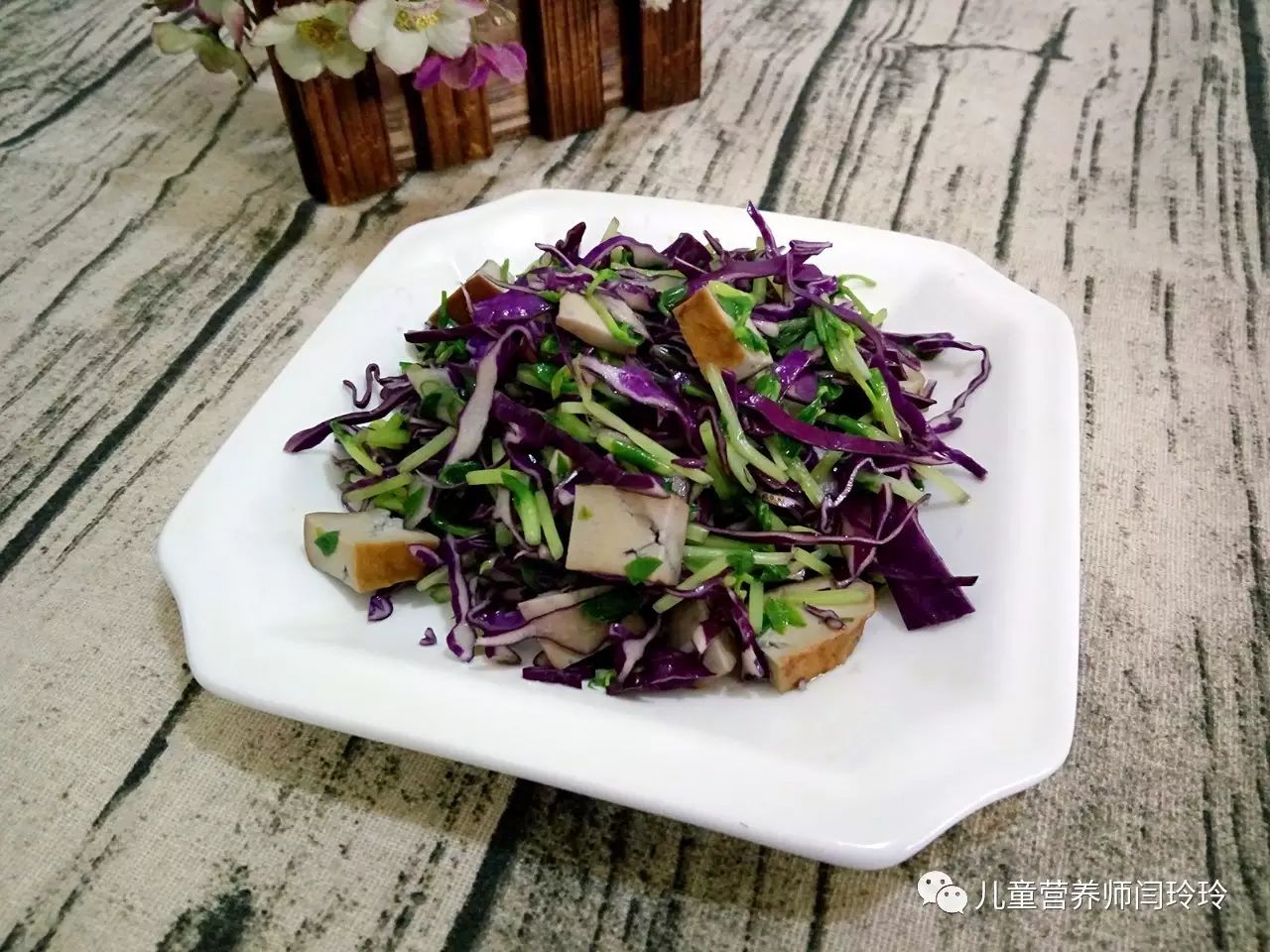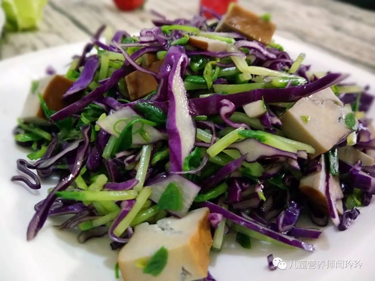 今天给大家推荐一道适合孩子生病期间食用的功能性食谱,食材上选择了紫甘兰、豌豆苗、香干,可以为宝贝提供丰富的维生素、矿物质和植物优质蛋白以及植物化学物质,建议搭配杂粮粥、杂豆粥或营养米糊,对促进消化,抗菌消炎都有很好的功效~~