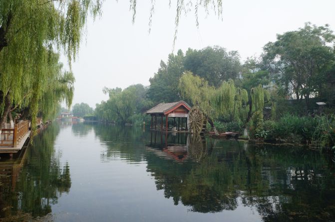 景色宜人人入画,高墙倒影漫濠河。