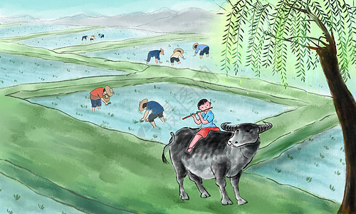 群芳争艳,万物欣然,谷雨是最能给人留下美好印象的节气。面对如此动人的自然音律,诗人们也没有闲着,纷纷吟诗作赋抒发情怀。唐人曹邺的《老圃堂》甚是有趣,“邵平瓜地接吾庐,谷雨干时手自锄。昨日春风欺不在,就床吹落读残书”。谷雨到了,诗人也凑个热闹,到瓜地里锄了一天的地,收工回家一看,春风已把作者读了一半的书吹落到地上了。宋朝的舒邦佐在《春日即事五首》中写道:“谷雨催秧蚕再眠,采桑女伴罢秋千。前村亦少游人到,牛歇浓阴人饷田。”诗句将谷雨与农事“催秧”等联系起来,谷雨时短,农事繁重,采桑女都顾不上荡秋千,牛也只能在地头的树阴下短暂休息,形象地描绘了一幅极美的农耕图。