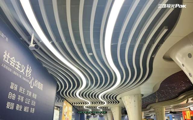 走进站厅通道:以异型灯展示出流线型的美学设计,灵动飘逸的层次感和舒展流畅的空间感,凸显国际化、现代化都市特色元素,展现宁波这座城市时尚新地标的现代气息。