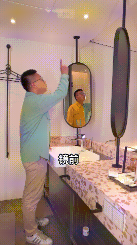 考虑到卫生间的空间有限,房东分别在洗手台、马桶、淋浴间上方设置了射灯来取代基础照明,不仅增加装饰观感,还增加了局部亮度。尤其是在生活细节上,在卫生间储物柜上安置一张大面积镜子,上方安装可调节角度射灯,保证化妆时的舒适感和清晰度,在明亮的镜前舒展租客魅力生活的每一天。