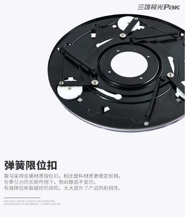 扇叶的弹簧限位扣采用了金属材质的限位扣,相比塑料的材质更稳定耐用,即使在牵引力的长期作用下也不易变形,大大降低了断裂破损的风险,产品质量更有保障更耐用。