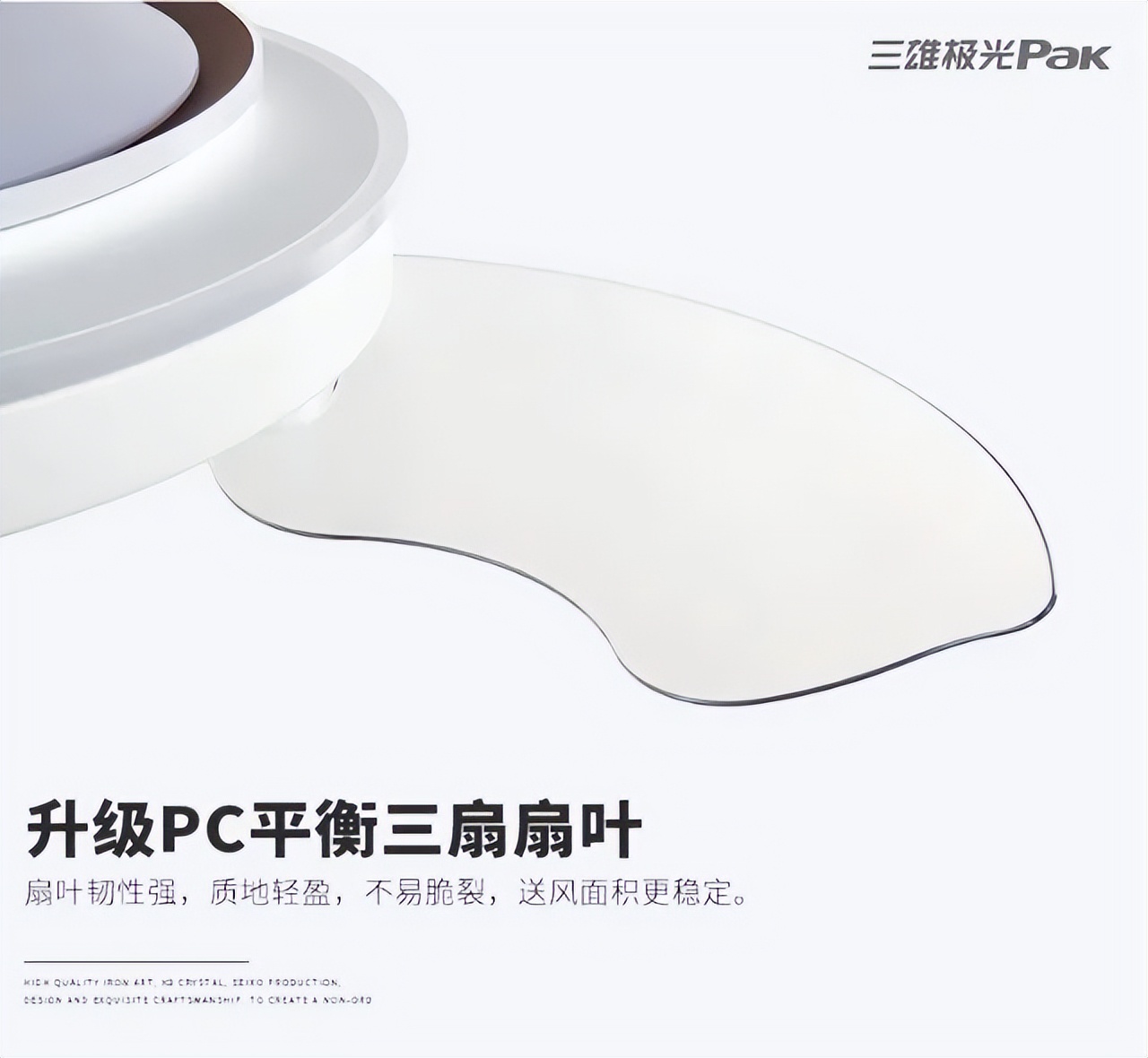 全新升级,高透光PC材质平衡三扇扇叶,不易脆裂、无论韧性还是稳定性都大大升级,出风面积也更稳定。