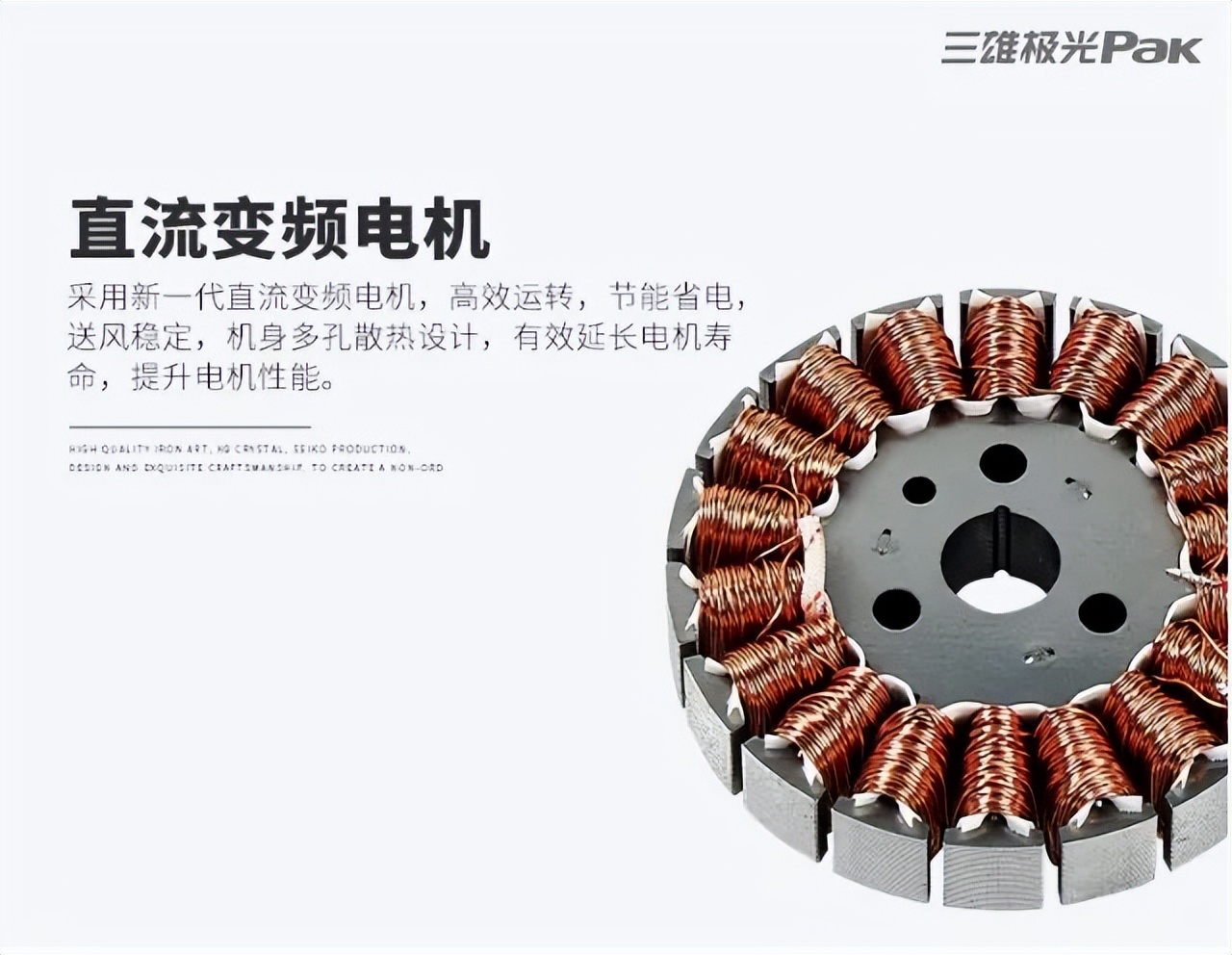 月辰风扇灯采用新一代直流变频电机,运转速度快且效能高,节能省电外,机身还设计了多个小孔解决散热的问题,更好的延长电机的寿命。