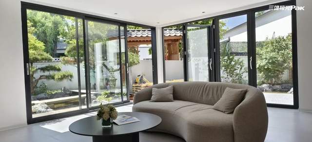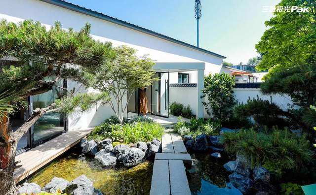 林荫小道,树植交错,自然、随性的艺术感生活图景由此展开。内外双庭院设计,穿行其中便能体会三雄极光坚持倡导的绿色健康生活方式。夜幕降临时,庭院柔和细腻灯光为夜晚增添温馨舒缓的气息。