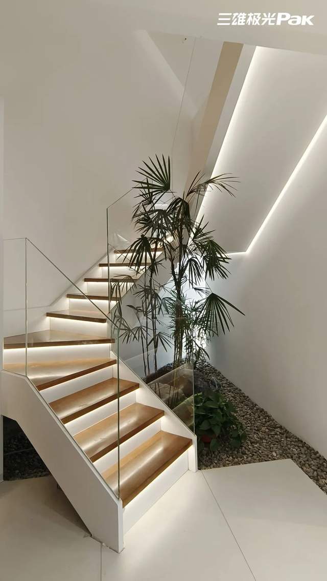 最后,现代语境下的高端理想人居,离不开科技加成。三雄极光霂合艺术馆搭载华为全屋智能系统,高效、准确地辅助生活所需,快速营造不同灯光氛围,编织具有科技之美的优雅图景。