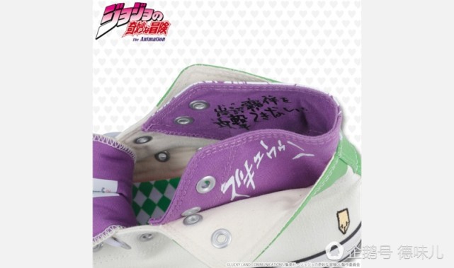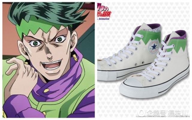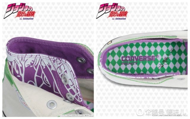 这几款《JOJO的奇妙冒险》匡威鞋是匡威和Bandai联名推出的,一共2款,分别是“岸边露伴”(JOJO第四部《不灭钻石》主角)和“吉良吉影”(第四部最终大BOSS)版。两款都已公开发售,不过只在Premium Bandai网站上有卖,而且只卖到2017Ian1月26日,过时不候。“吉良吉影”版1400人民币,岸边露伴版770人民币。