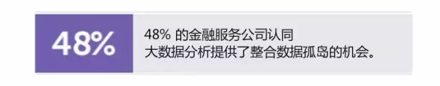 48% 的金融服务公司认同大数据分析提供了整合数据孤岛的机会。在情理之中的是,与金融世界最紧密相连的公司将大数据视为优先事项。根据 Gartner 的报道(「数据质量现状:现行的做法和发展趋势」),低质量的数据每年让公司付出 1420 万美元。财务报表上不可能存在该对这种级别的损失负责的条目。通过系统地整合这些数据孤岛,大数据转变是可以克服这个挑战的——而且可以将低劣的数据转换为有用的信息。