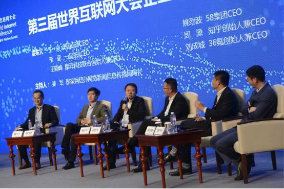 今日,在乌镇世界互联网大会上,美团点评CEO王兴、58集团CEO姚劲波、一点资讯CEO李亚、知乎创始人兼CEO周源、摩拜科技联合创始人兼CEO王晓峰、36氪创始人兼CEO刘成城等互联网企业代表就“创新驱动,造福人类”这一主题回答记者提问。集体采访由国家互联网信息办公室网络新闻信息传播局局长姜军主持。