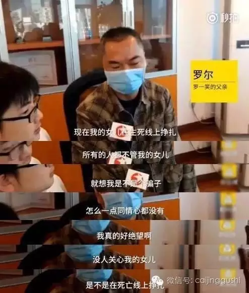 但是30日,随着网友的质疑和媒体的追问铺天盖地而来,罗尔他痛哭失声,对那些跌跌不休追问质疑的“所有人”充满了十足的怨恨,“现在我的女儿在生死线上挣扎,所有的人都不管我的女儿,就想我是不是骗子,怎么一点同情心都没有,没人关心我的女儿是不是在死亡线上挣扎”。