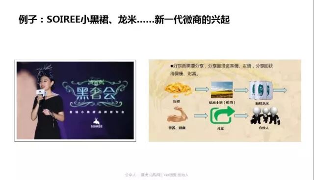 微商也是一个会员制商业模式,以面膜为代名词的类传销式早已成为代名词,新一代健康的直销式微商崭露头角,如龙米打通大米产业链,重品质,重品牌,重口碑,消费者也是传播者,不到十个人团队一年收入达到4000万;小黑裙,如今已经从一个只卖一条小黑裙的社群,开始横向扩展品类,提供其社群用户感兴趣的第二个品类。这两个创业团队从创业一开始就盈利很好,有持久性的发展动力。