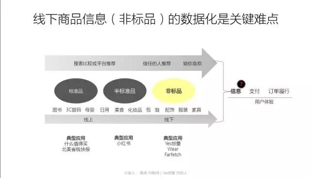 个性化购物已然成为年轻新生代的主流行为,如何解决个性非标品的数据化,成为促成用户线上交易的关键。我们发现,在数据化能力不够的当下,网红可以有效地帮助连接用户和商品,共享模型在购物消费领域同样适用。随着商品从标准品往非标品过渡,搜索变得不那么重要,推荐,则变得非常关键,一个是信任人的推荐,还有平台基于深度学习或者精准业态的猜你喜欢。