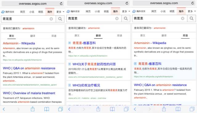 图:搜狗海外搜索“青蒿素”呈现结果