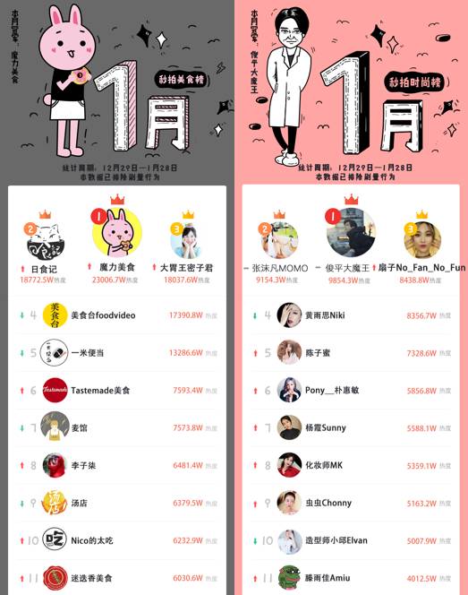 于是对趋势的把握变得尤为重要,头部梯队的“灯塔”含义也不言自明。自去年6月,秒拍每月都会发布热门原创短视频UGC榜单(9月起又增加垂直榜单和风云榜单)。2月初,2017年第一份榜单出炉,细心者大可窥见短视频在新的一年几处重要的变量:譬如,“papi酱”正在通过向MCN转型获取更大可能性,“关爱八卦成长协会”正在借助与一众粉丝的强互动性扩大力量,完成自我迭代。