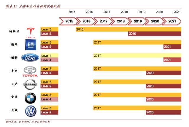 比如,福特宣布2021年实现完全自动驾驶汽车(SAE L4,等同于L3)的商业落地;已通过投资各垂直领域的制造商,手握激光雷达、人工智能、算法和地图四张王牌。