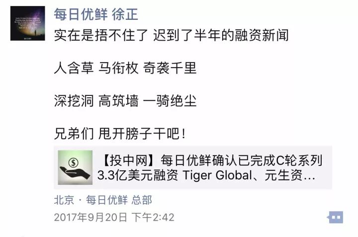 近日,每日优鲜公布了C 轮2.3亿美元的融资信息,至此,其在C轮系列一共拿到了3.3亿美元。