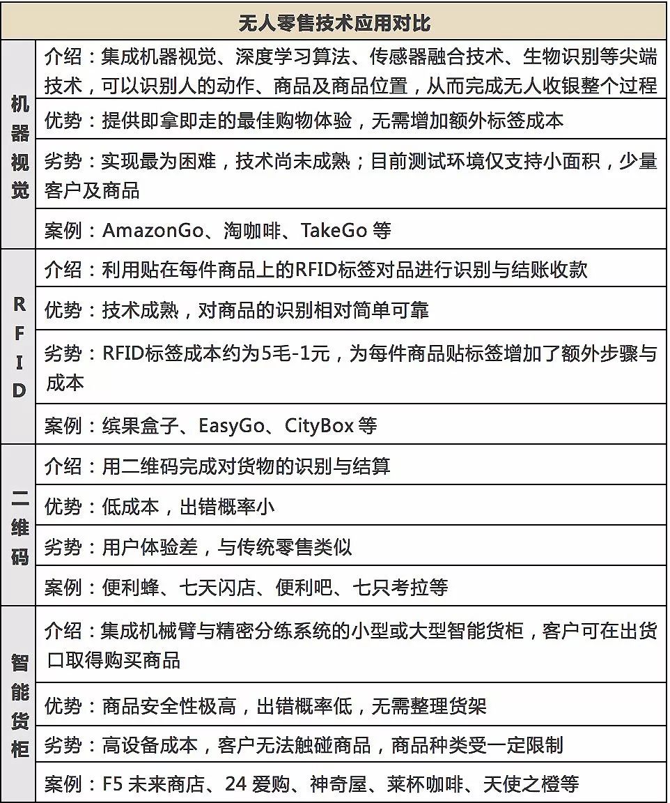 其中机器视觉方案的用户体验最佳,但现阶段尚未成熟,是未来的发展方向;二维码扫描成本低,但盗损率高。因此 RFID 和售货机是目前比较折中的解决方案。