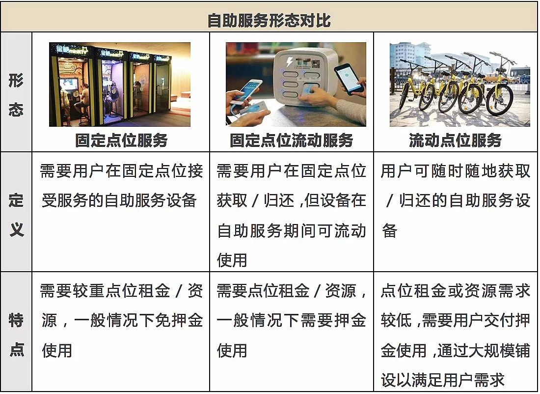 KTV、健身仓、按摩椅等)、固定点位流动服务类(如共享充电宝、篮球等)、以及流动点位服务类(如共享汽车、共享单车等)。