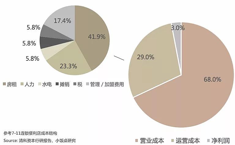 营业额可以进一步通过点位客流量×购买使用率×客单价计算获得。通常来讲,一个点位的选址、商品种类、客流质量、用户体验和主推商品的选择等因素直接影响到了该点位的营业额,而通过规模化采购、提高供应链效率和主打自有品牌能够有效增加毛利率水平,经营成本的最大开销则是该点位的租金费用、物流成本、维护成本、水电气费等。