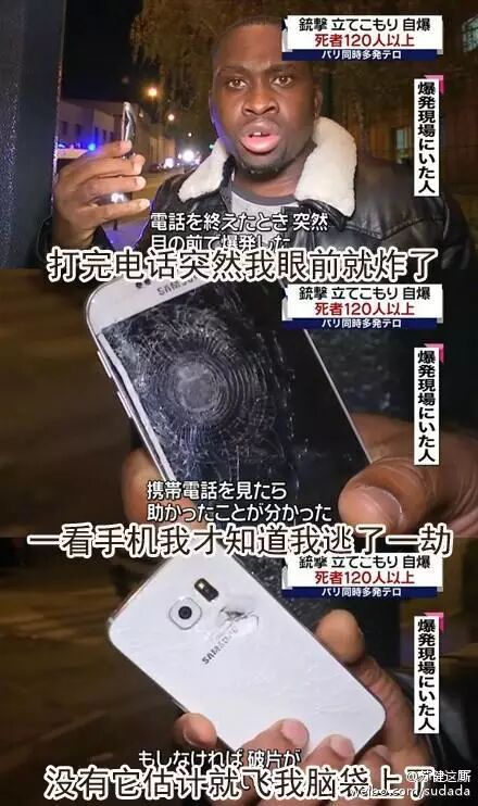 一男子靠手机挡住子弹碎片捡回一条命,仔细一看竟然是三星S6 edge ,我觉得苹果应该借鉴一下这个事件做个广告——用苹果6S录了一会4K视频发现容量满了就提前回家,逃过了一劫。——xie107