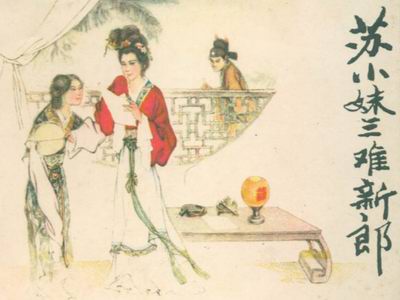 《醒世恒言》中,《苏小妹三难新郎》写在新婚之夜,苏小妹考试新郎秦少游,出的题是一首诗谜:“强爷胜祖有施为,凿壁偷光夜读书。缝线路中常忆母,老翁终日倚门闾。”其谜底分别是孙权、孔明、子思、太公望四个人名。