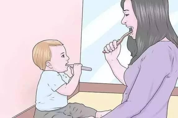 你和宝宝同时刷牙,并且告诉宝宝你正在做什么,让他也跟着你做。