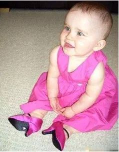 宝宝非常不利于儿童足部的健康发育的,甚至会影响宝宝的站姿走姿和引起背部问题。同时,穿上高跟鞋也会增加宝宝摔倒、扭伤挫伤的风险。小女孩都喜欢偷穿妈妈的高跟鞋,妈妈们要正确引导,但不建议给宝宝专门买高跟鞋穿。