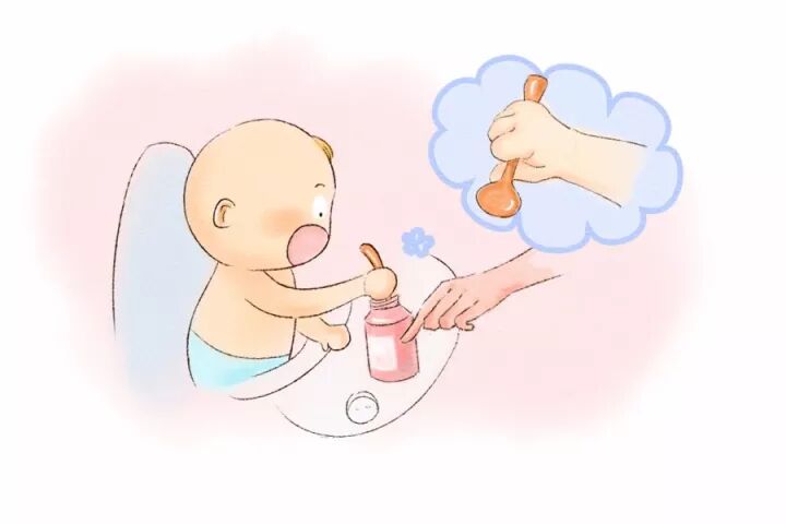 在宝宝8、9个月时,就会开始对汤匙产生兴趣,甚至会伸手想要抢妈妈手中的汤匙。此时妈妈就应该让宝宝自己试着使用。一开始妈妈可以从旁协助,如果宝宝不小心将汤匙掉在地上,妈妈也要有耐心地引导,千万不可以严厉地指责宝宝,以免宝宝排斥学习。