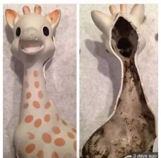 前段时间,国外有个妈妈发了个贴子,说的是她剪开了宝宝使用的牙胶,居然发现牙胶内长满了黑色的霉菌,简直比抹布还脏。